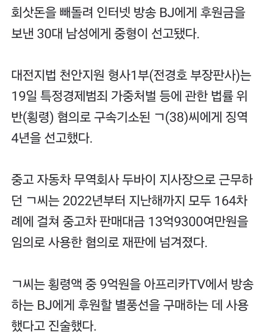 회사돈 9억 빼돌려, BJ한테 별풍선 쏜 남자