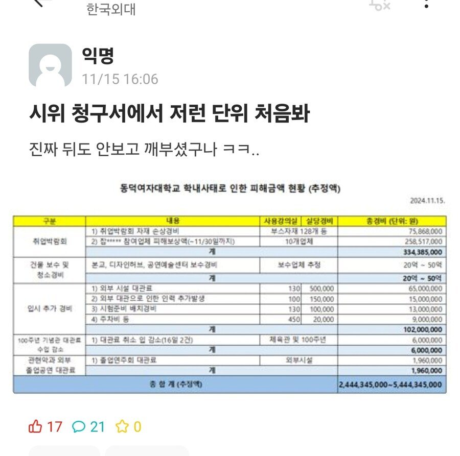 54억치 박살내기 vs 5만원 과잠 구하기