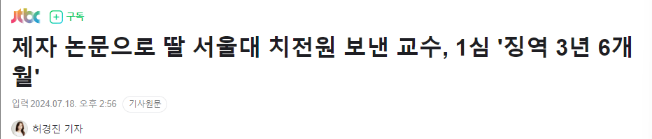 제자 논문으로 딸 서울대 치전원 보낸 교수, 1심 '징역 3년 6개월'