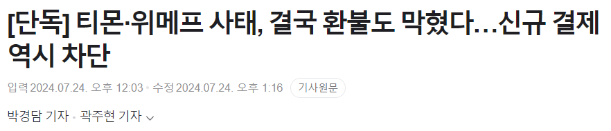 티몬·위메프 사태, 환불·취소도 차단 ㄷㄷㄷㄷㄷㄷ