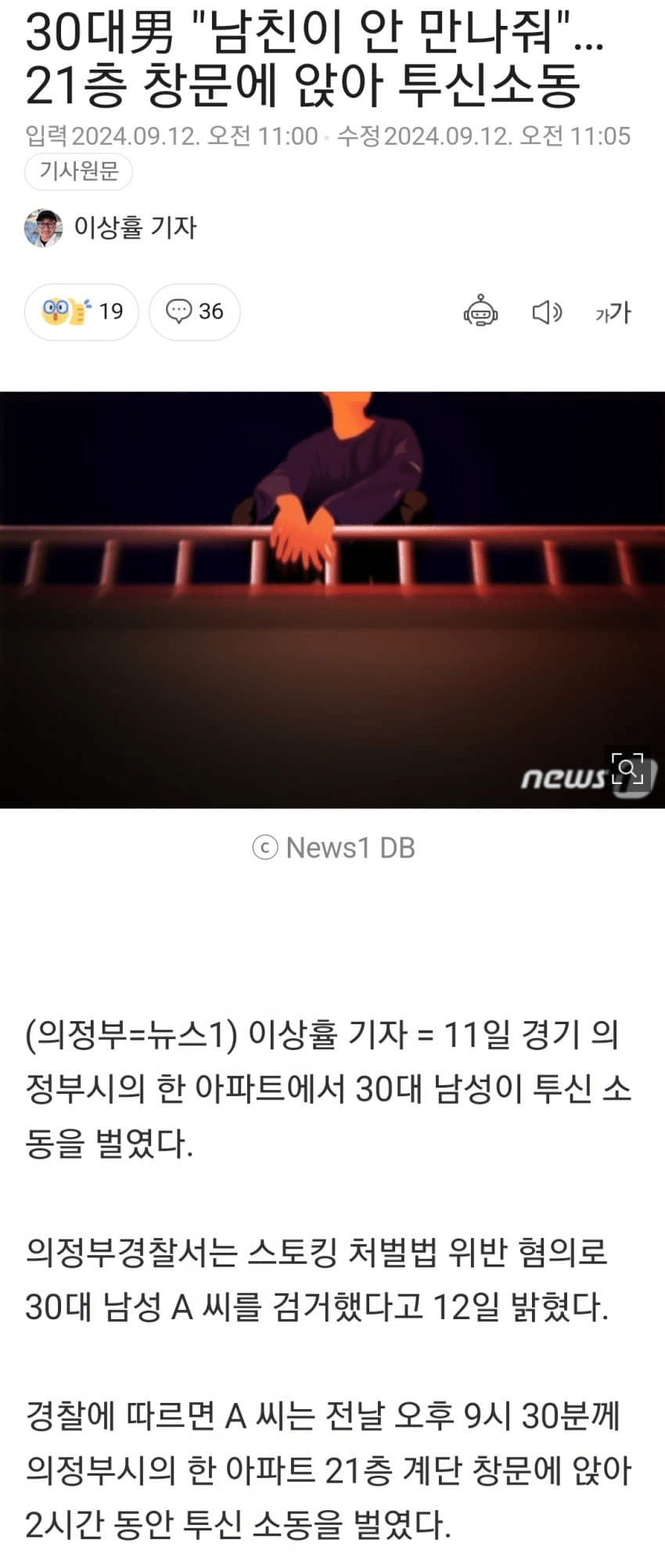 30대男 "남친이 안 만나줘"…21층 창문에 앉아 투신소동 ㄷㄷㄷㄷ