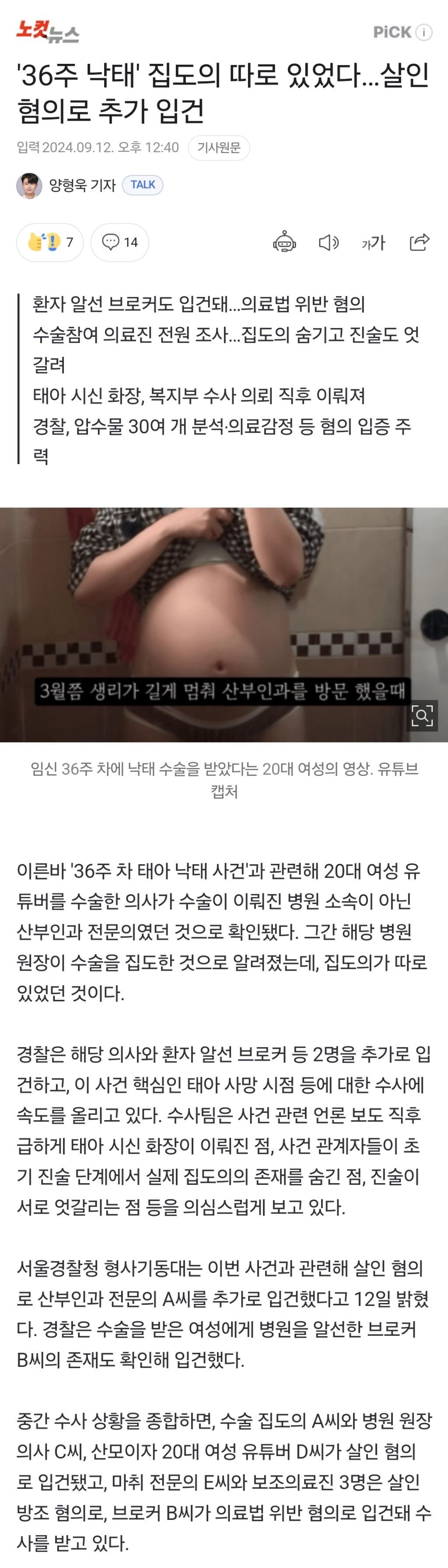 '36주 낙태' 집도의 따로 있었다…살인 혐의로 추가 입건
