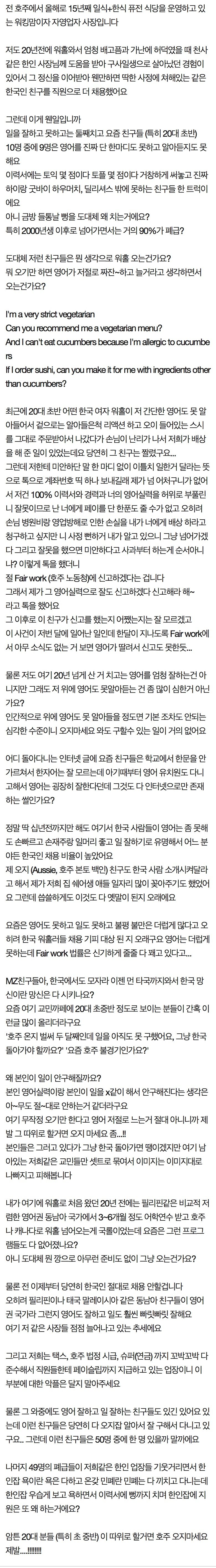 영어 ㅈ도 못하는데 왜 워홀오냐는 사람 ㅎㄷㄷㄷㄷ