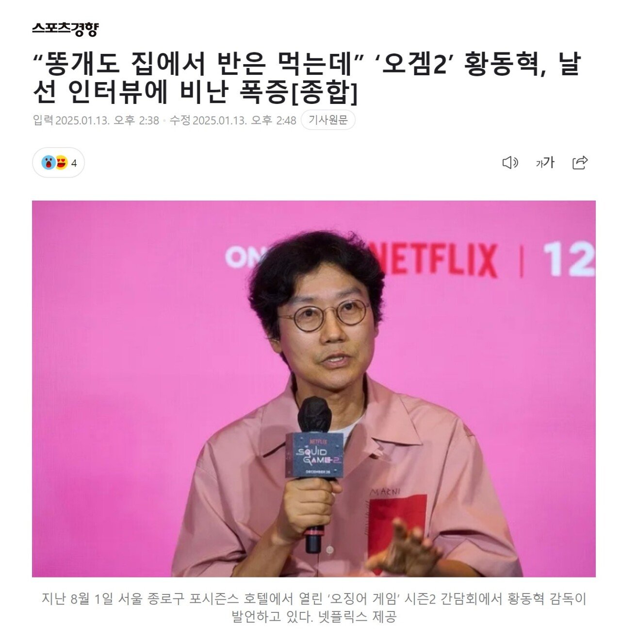 "똥개도 집에서 반은 먹는데" '오겜2' 황동혁, 날선 인터뷰에 비난 폭증