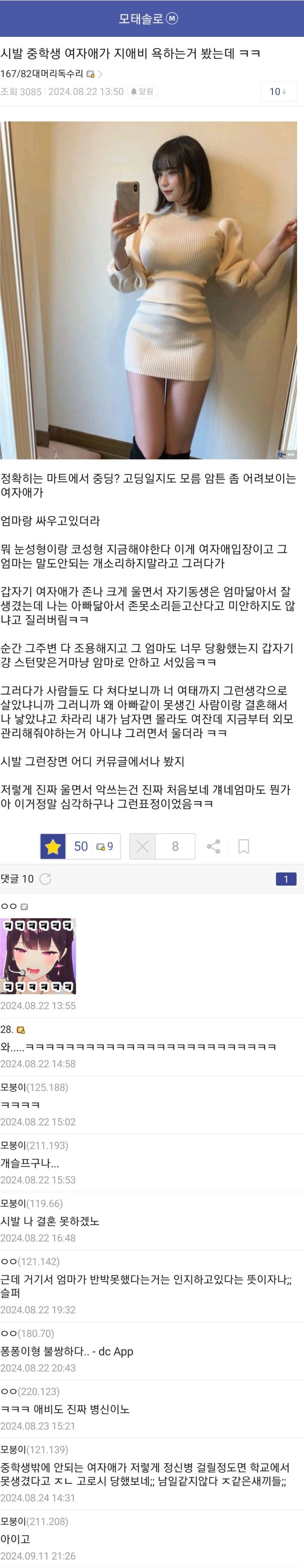 중학생 여자애가 자기 아빠 욕하면서 울더라