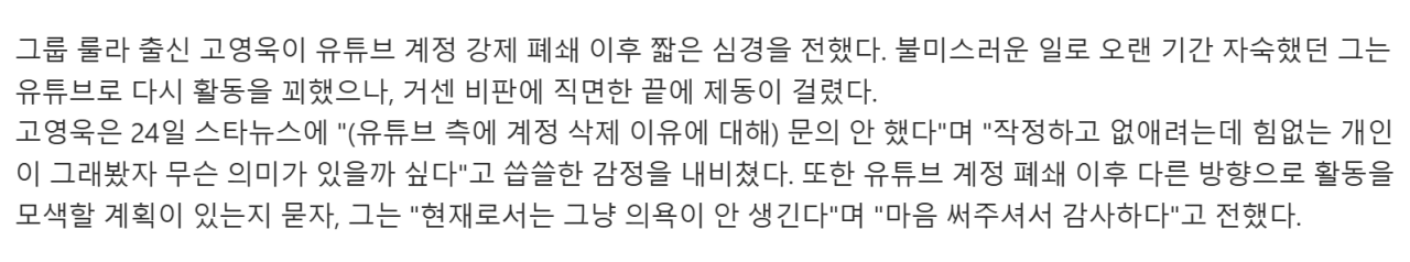유튜브도 막힌 고영욱 "작정하고 계정 없애는데..의욕 안 생겨"