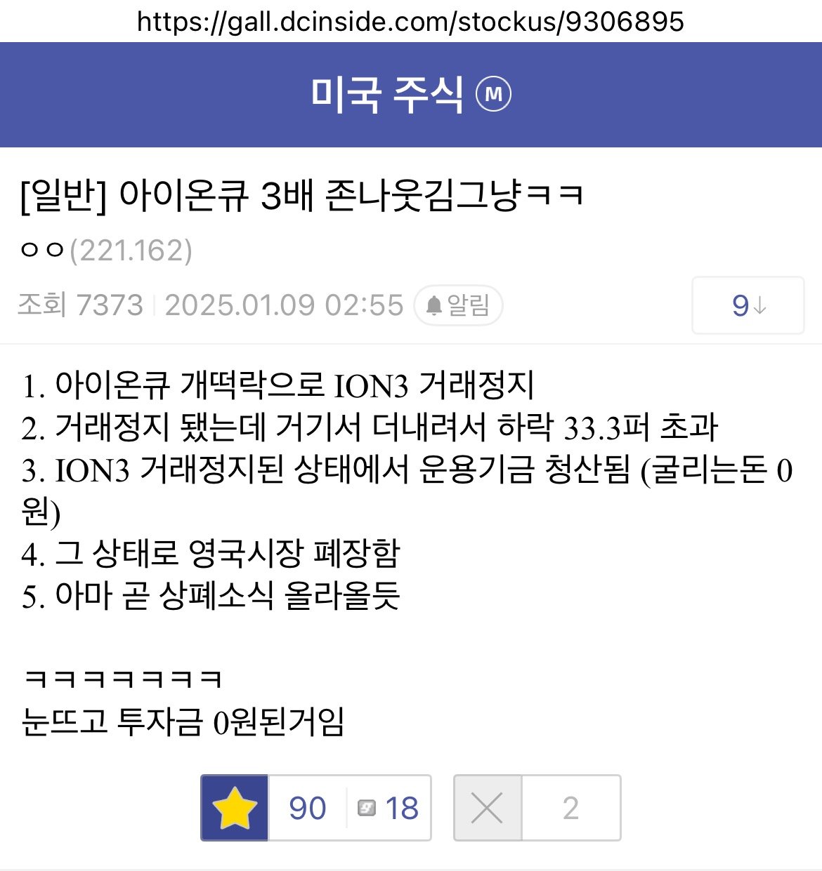 -133% 찍으며 바로 상장폐지 ㄷㄷㄷ