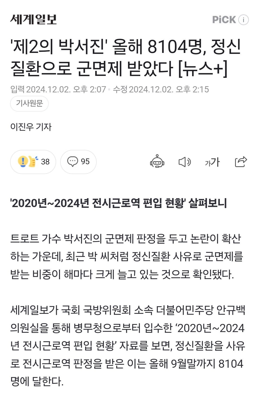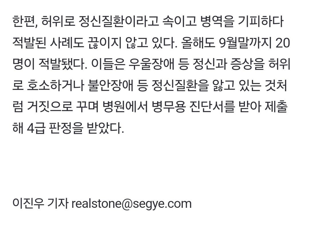 '제2의 박서진' 올해 8104명, 정신질환으로 군면제 받았다 .gisa