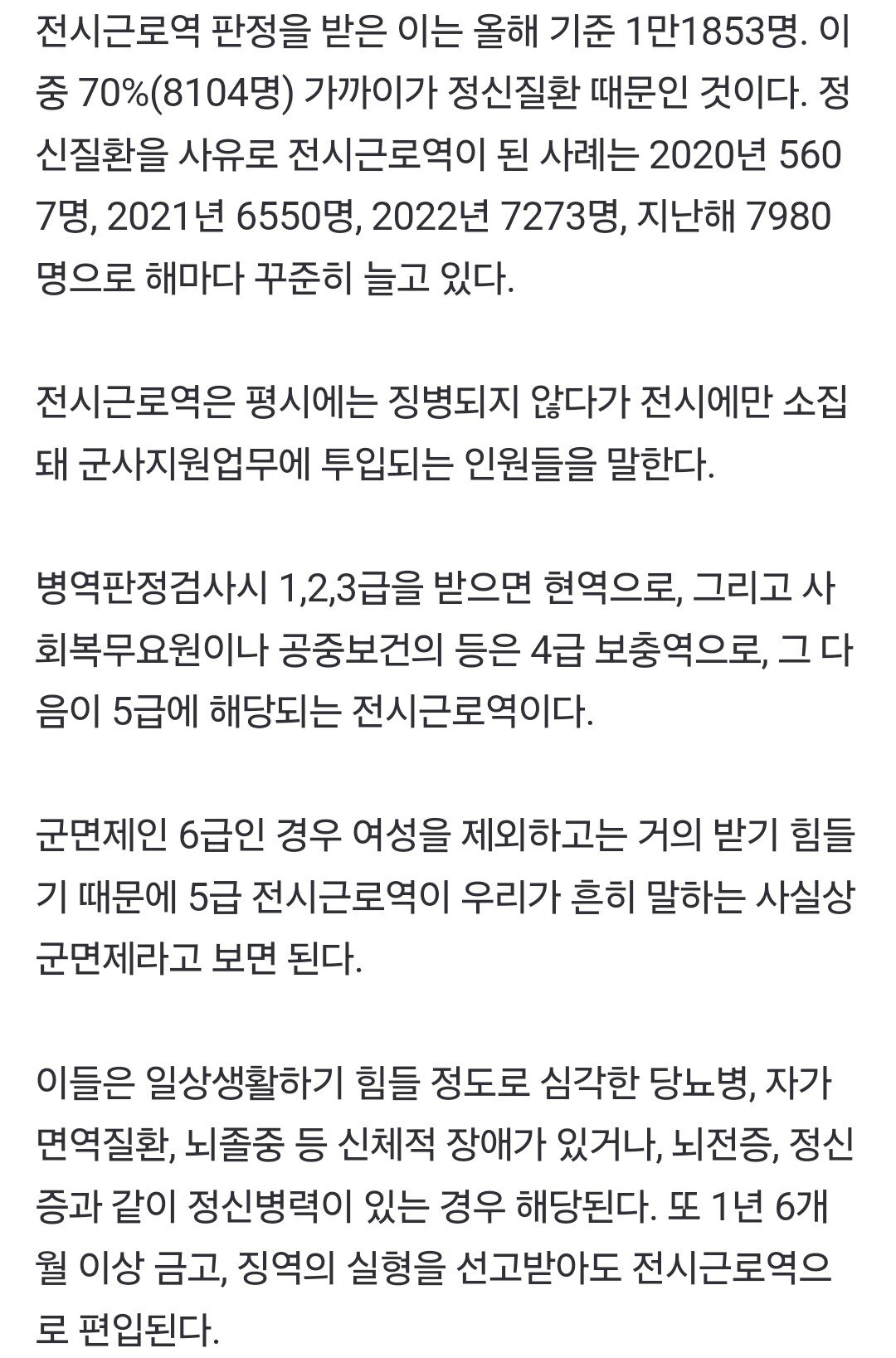와 8000명 이상이 한해에 정신질환으로 군면제라니 ㄷㄷㄷㄷ