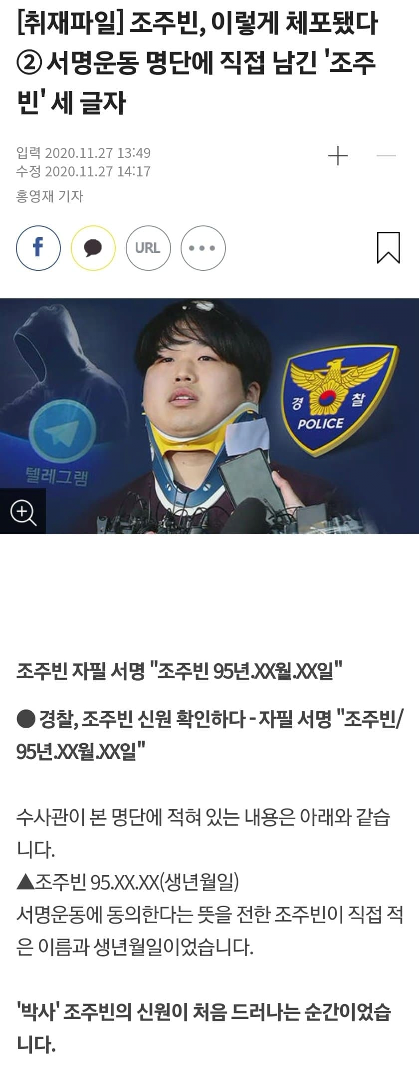 신원확인 안된 상태로 추적 중이던 조주빈 인적사항 득템