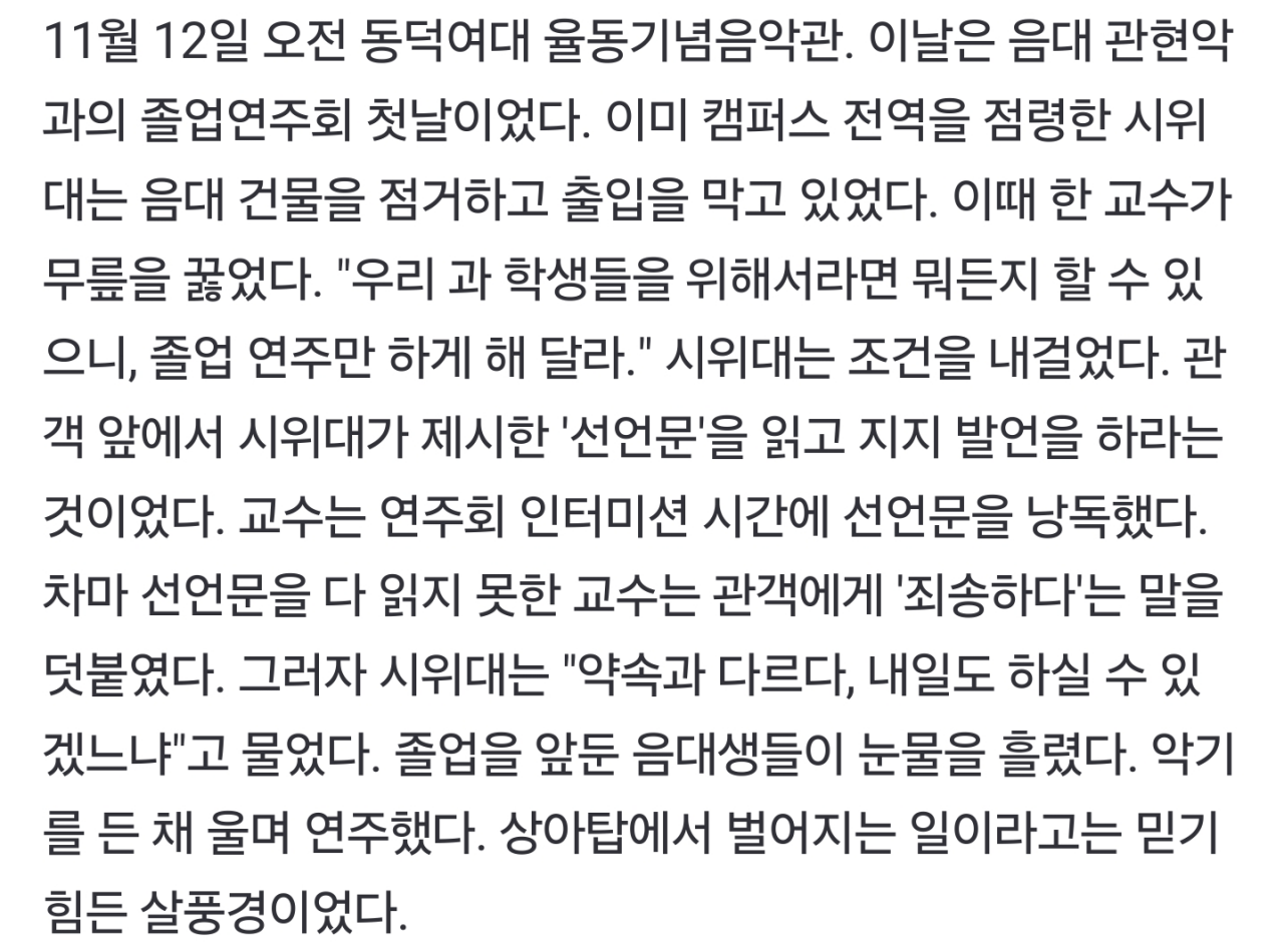 충격적인 동덕여대 졸업연주회 당시 상황 보도
