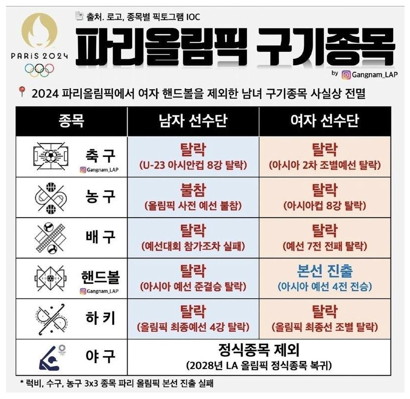 대한민국 파리 올림픽 구기 종목 근황.jpg