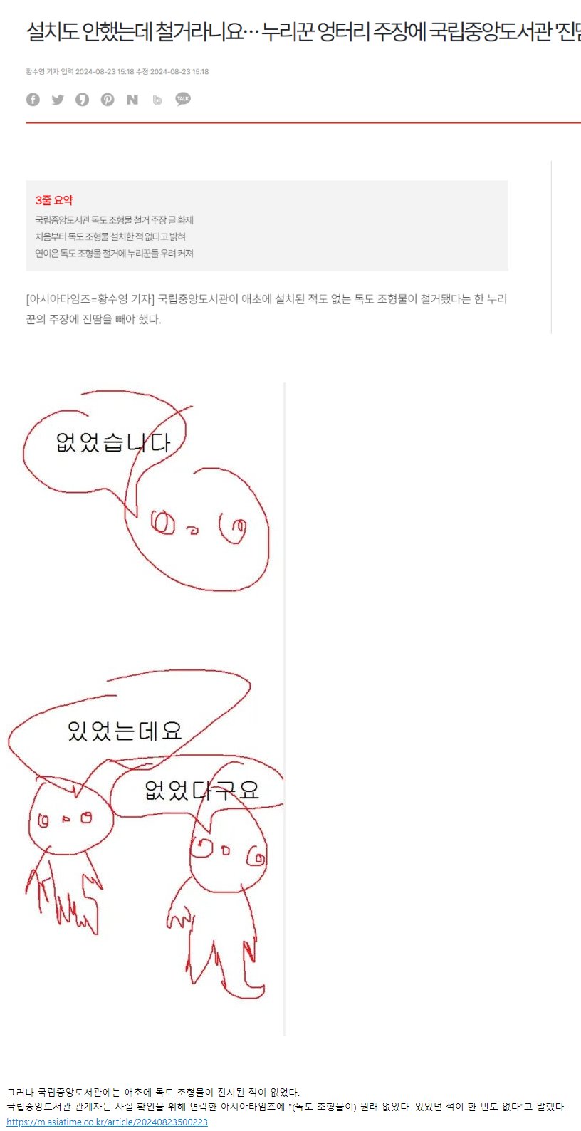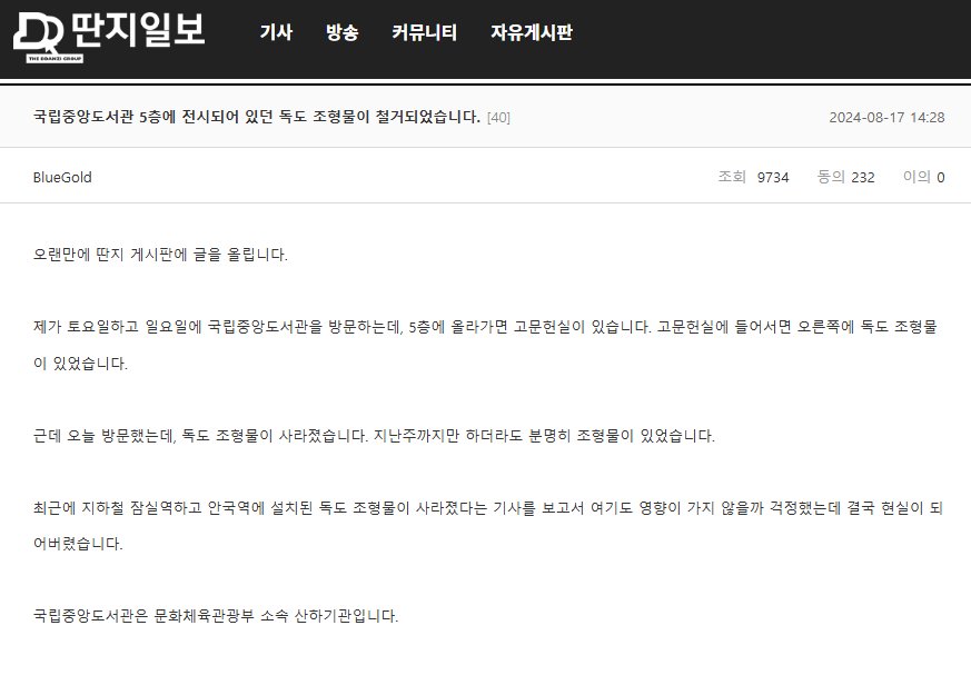 국립중앙도서관, 독도모형 원글 ㄷㄷㄷㄷ