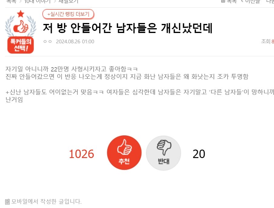 가해자 사형시키자고 해도 그냥 한남주제에 신났다고 욕먹음....