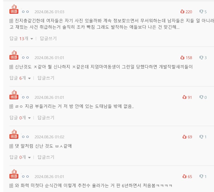 화들짝....남자가 딥페가해자 욕했을시 일어나는 일들