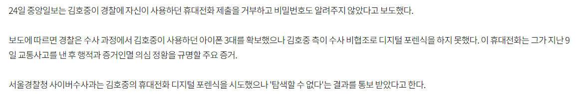 '음주 뺑소니' 김호중, 수사 비협조적이네…압수된 스마트폰 비밀번호 안 알려줌