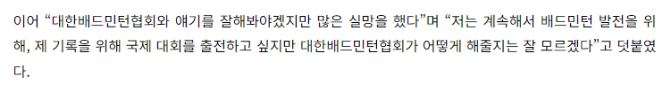 안세영은 처음부터 협회랑 얘기 더 해보겠다는 스탠스였음