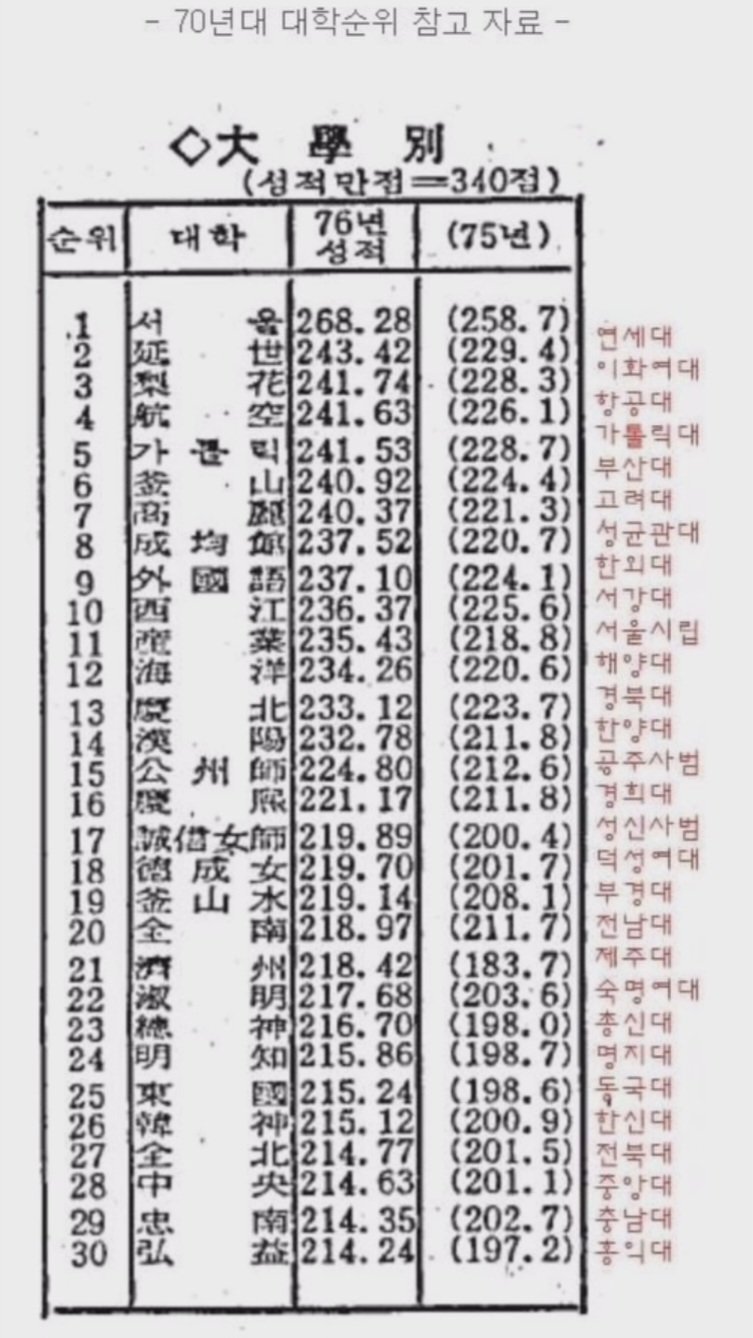 지금과는 사뭇 다른 1975년 대한민국 대학 순위 ㄷㄷㄷ