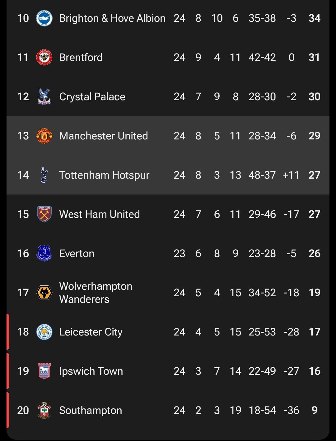 토트넘 홋스퍼(14위) vs 맨체스터 유나이티드(13위)