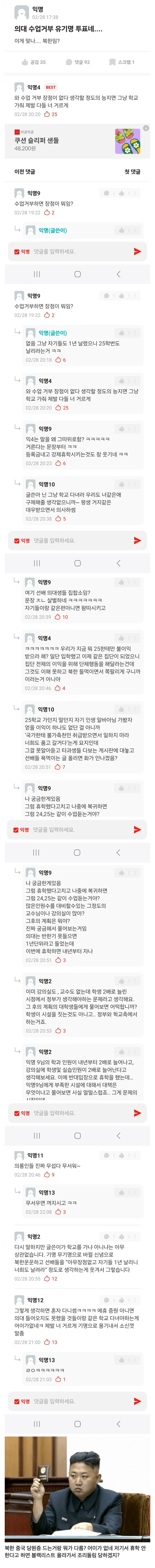 신입생들 상대로 빨갱이식 공개투표를 시행중이라는 의대 재학생들 ㄷㄷ