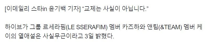 [공식] 하이브 "르세라핌 카즈하·앤팀 케이 교제 사실 아냐"