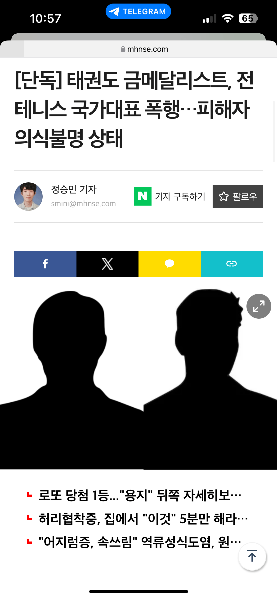 [단독] 태권도 금메달리스트, 전 테니스 국가대표 폭행…피해자 의식불명 상태