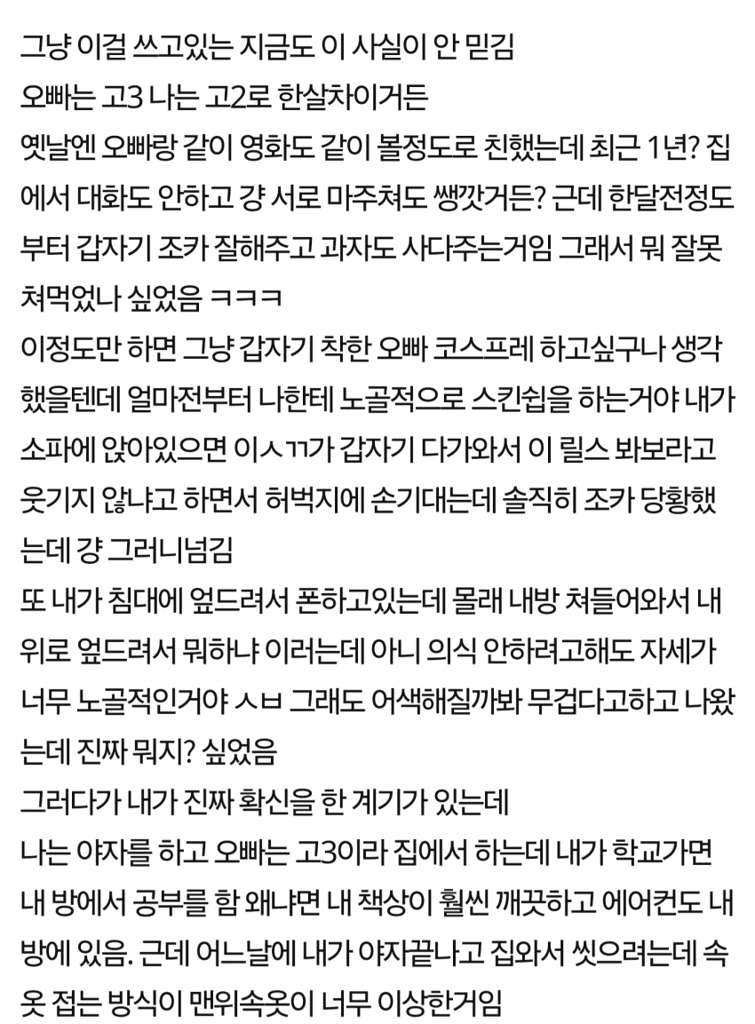 친오빠가 자꾸 스킨십하고 날 좋아하는 거 같아요..jpg