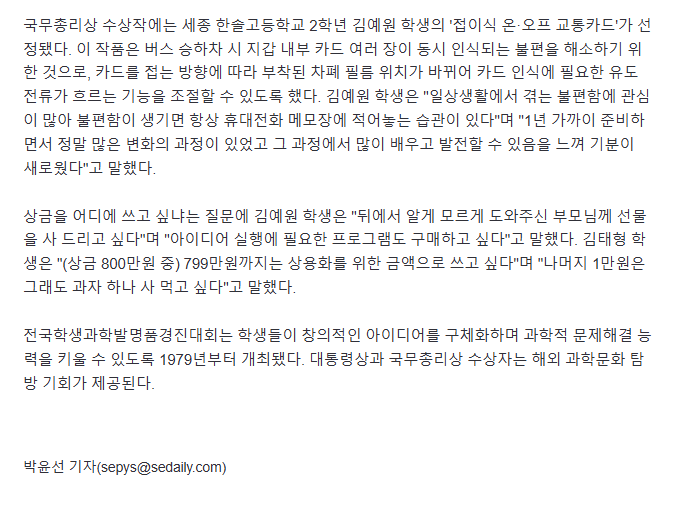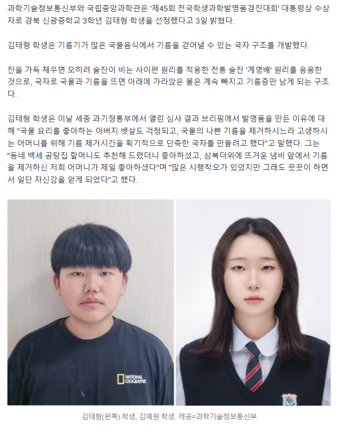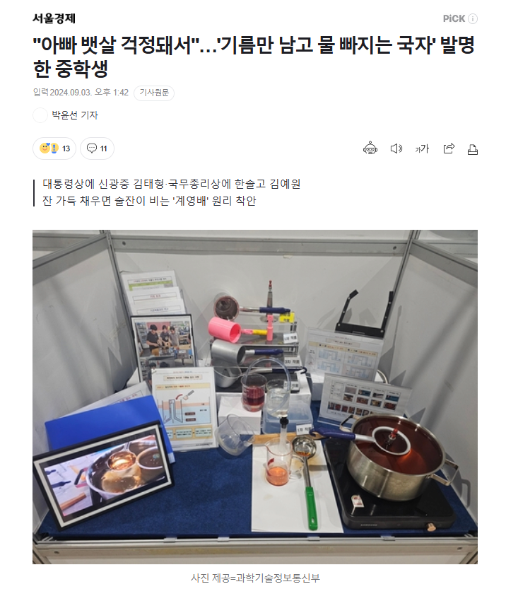 "아빠 뱃살 걱정돼서"…'기름만 남고 물 빠지는 국자' 발명한 중학생