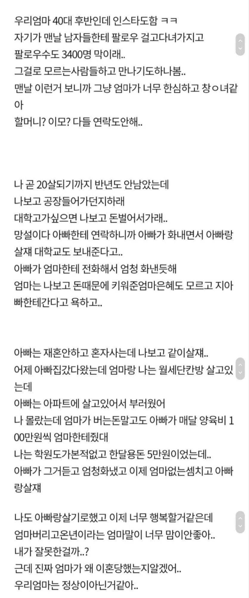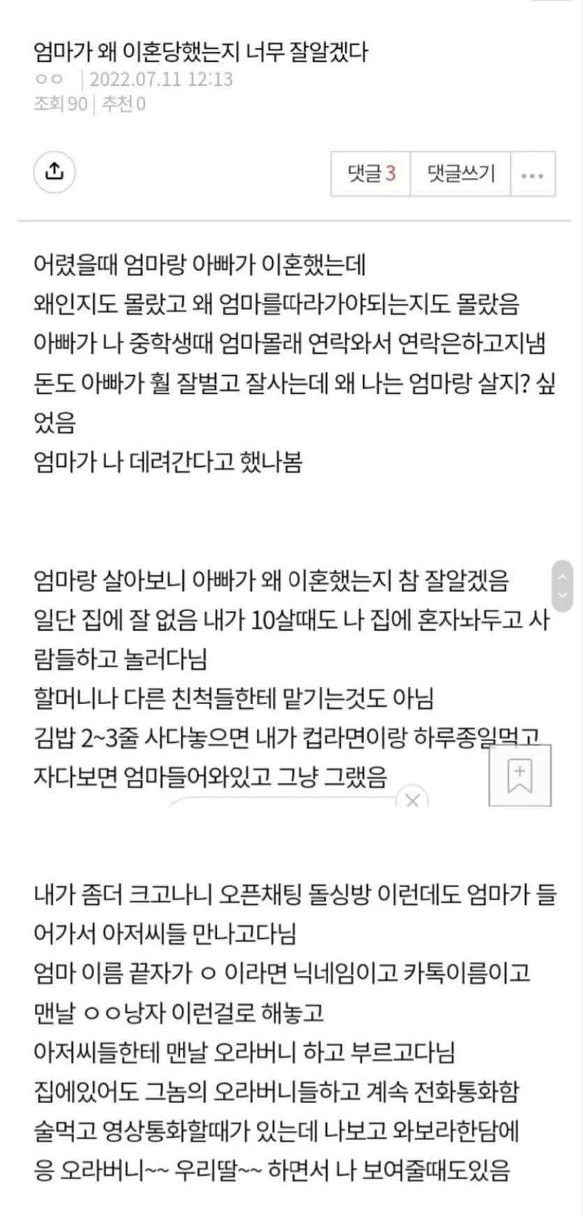 엄마가 왜 이혼했는지 알게된 딸ㄷㄷ