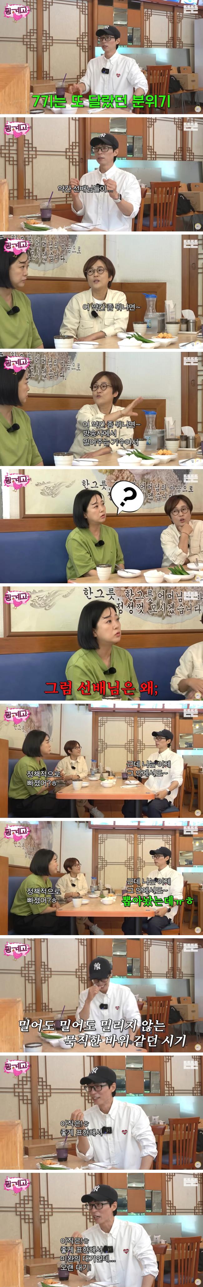 7기가 처음부터 방송사에서 밀어주던 기수라 선배들이 별로 안 좋아했었다고 함