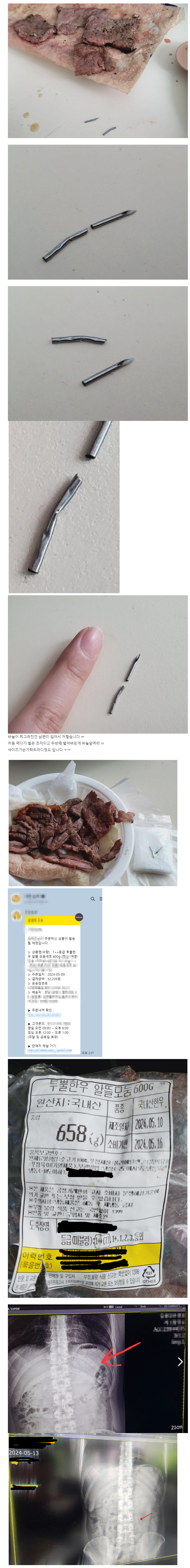 같이먹은 저는 이상없고 남편 위장에 바늘조각으로 추정되는 이물이 나왔습니다