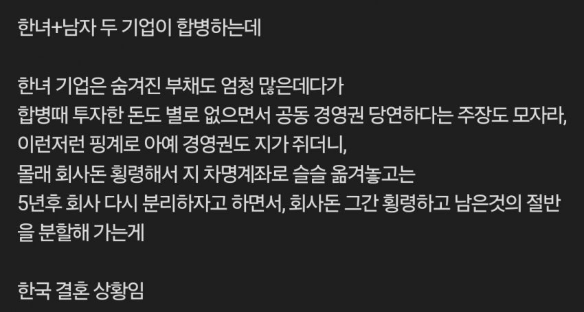 기업 합병으로 비유한 한국 결혼 상황...jpg