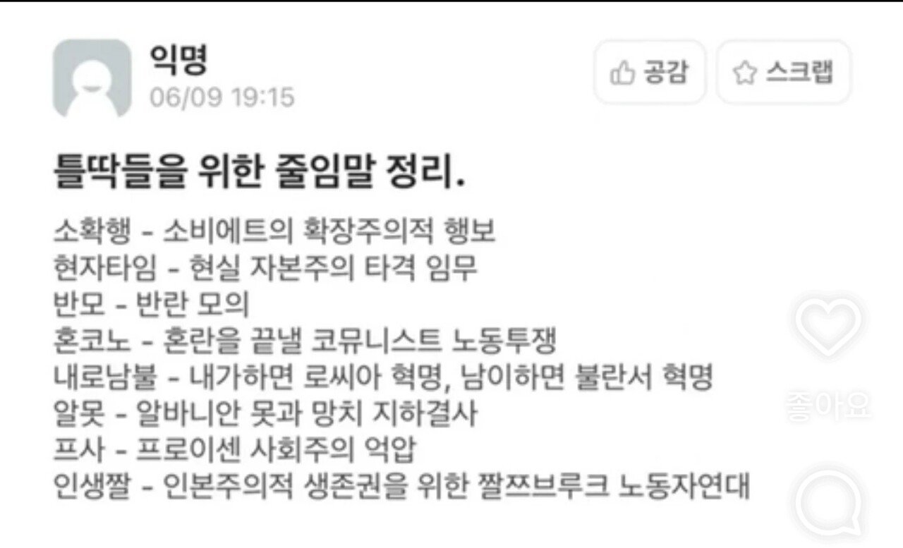 요즘 Z세대들의 줄임말 모음