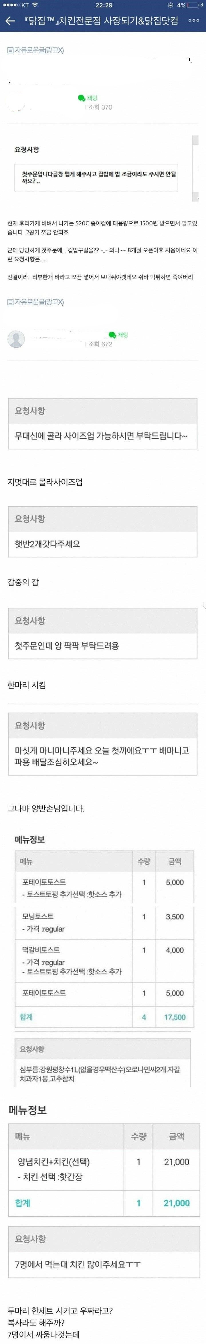 치킨 사장을 괴롭히는 요청 사항들