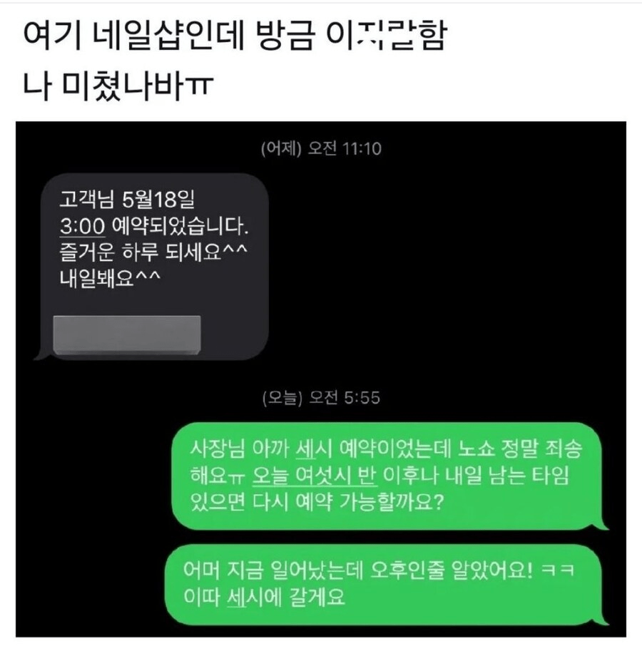 사장님 3시 예약이었는데 노쇼 정말 죄송해요ㅠ...jpg