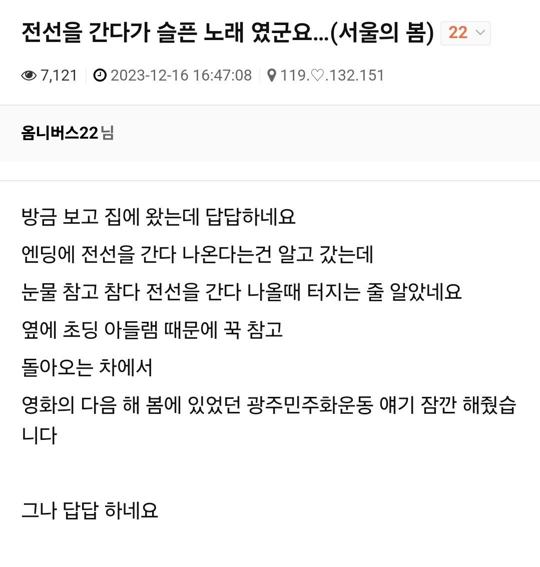 군가 중에 "전선을 간다" 정말 좋다. 너무 슬프다 ;;
