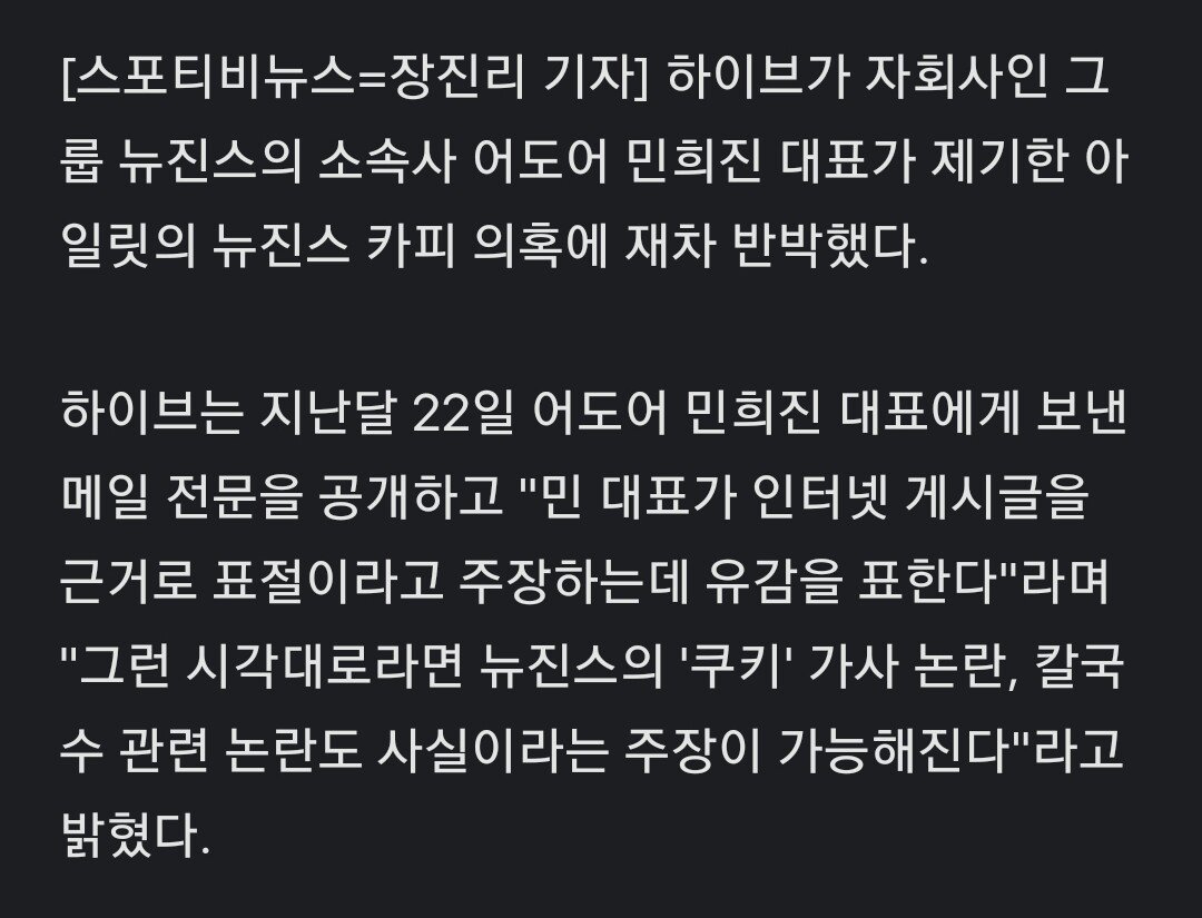 하이브 "아일릿이 뉴진스 카피면 '쿠키'+칼국수 논란도 사실 된다"