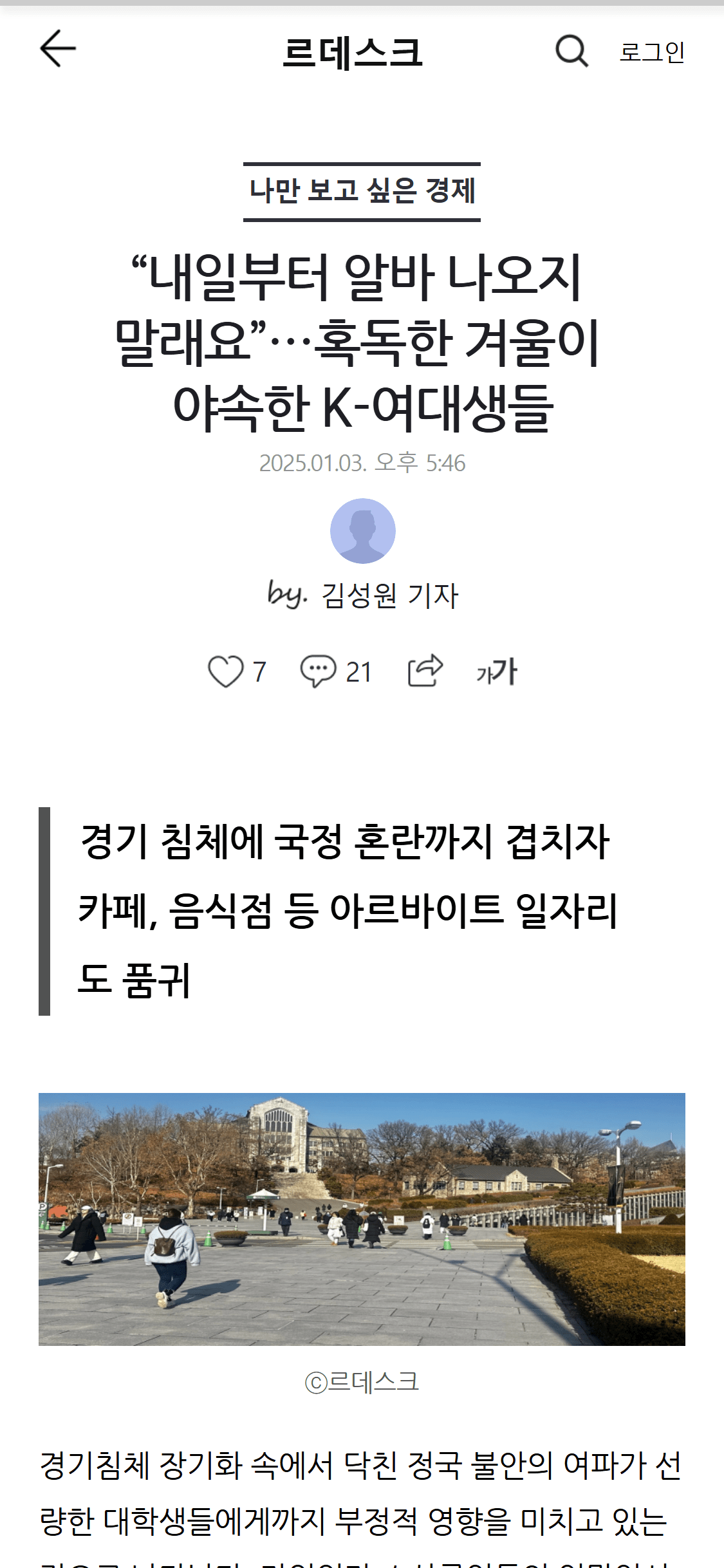 "내일부터 나오지 말래요" 혹독한 겨울이 야속한 K-여대생들