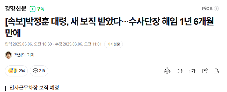 인사근무차장 보직 예정