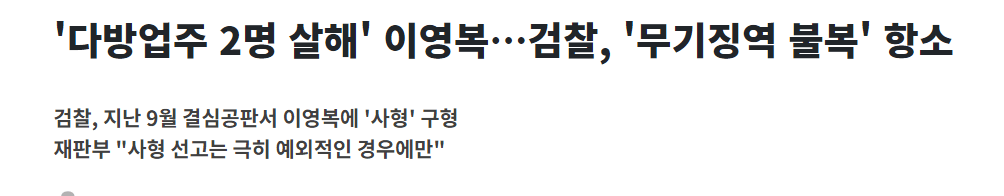 '다방업주 2명 살해' 이영복…검찰, '무기징역 불복' 항소