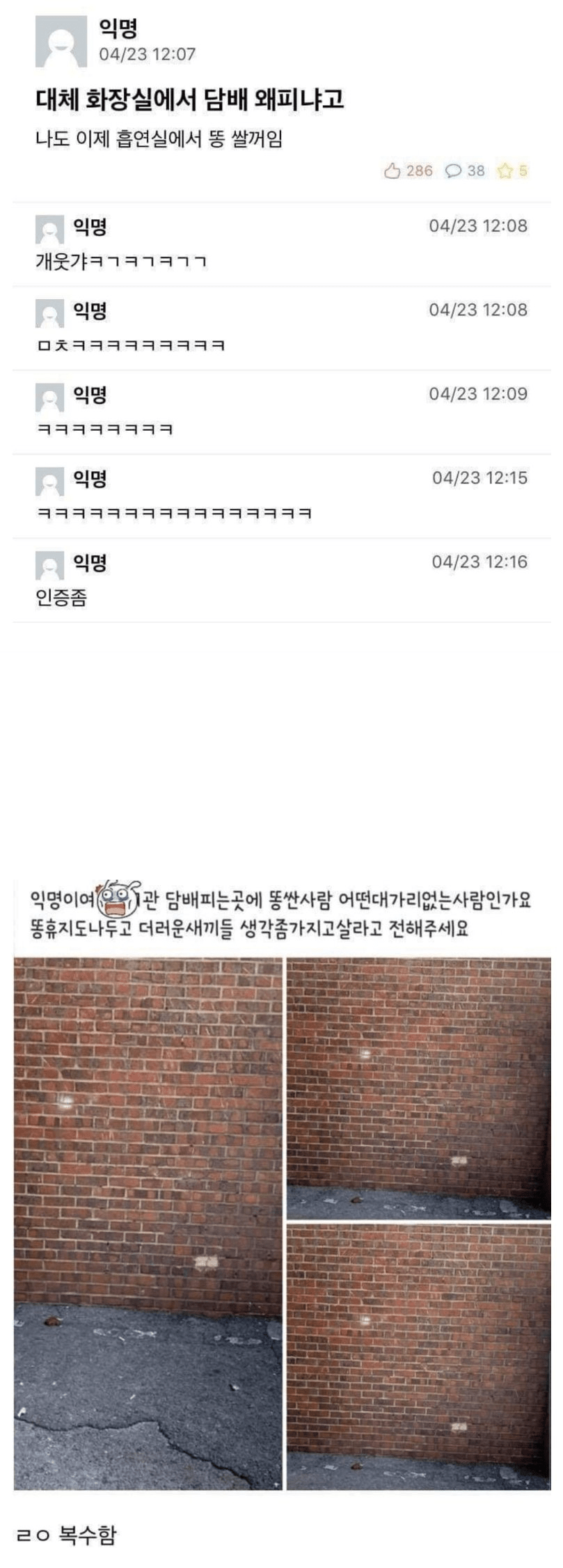 화장실 흡연에 진심으로 빡친 사람.JPG
