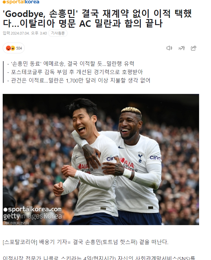 'Goodbye, 손흥민' 결국 재계약 없이 이적 택했다,,,