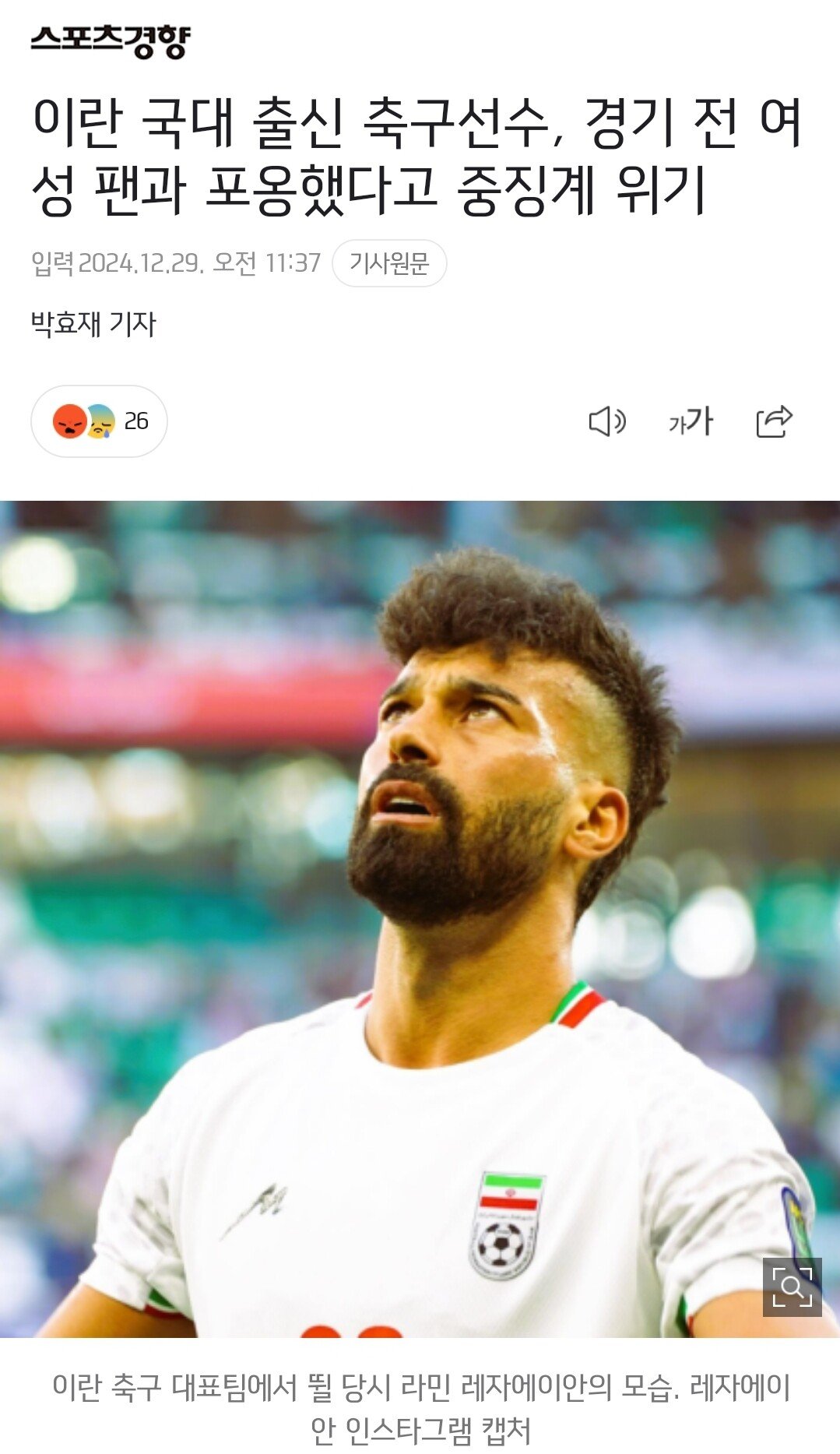 이란 축구 국대 출신, 경기 전 여성 팬과 포옹했다고 중징계 위기