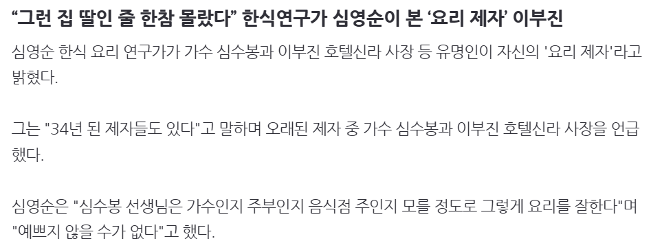 “그런 집 딸인 줄 한참 몰랐다” 한식연구가 심영순이 본 ‘요리 제자’ 이부진