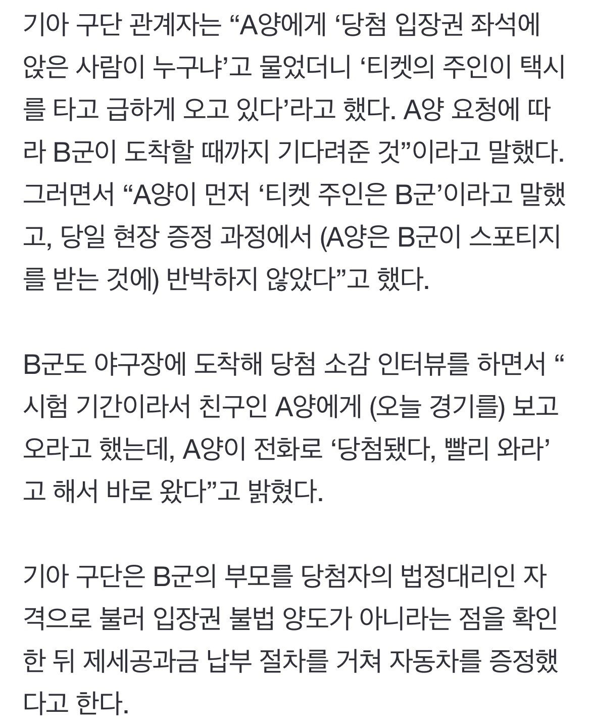 4. B군 택시타고 경기장 와서 경품 수령(A양도 반박x)