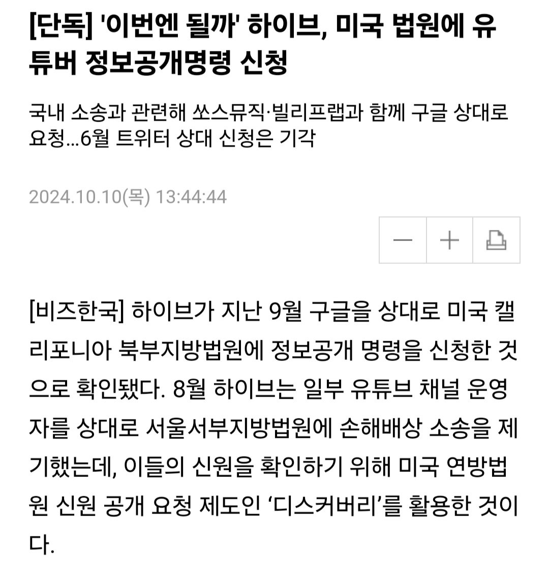 [단독] '이번엔 될까' 하이브, 미국 법원에 유튜버 정보공개명령 신청