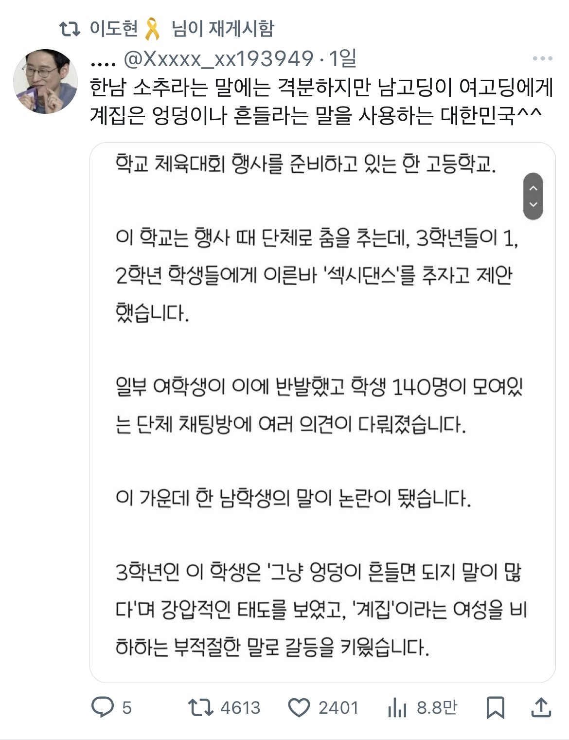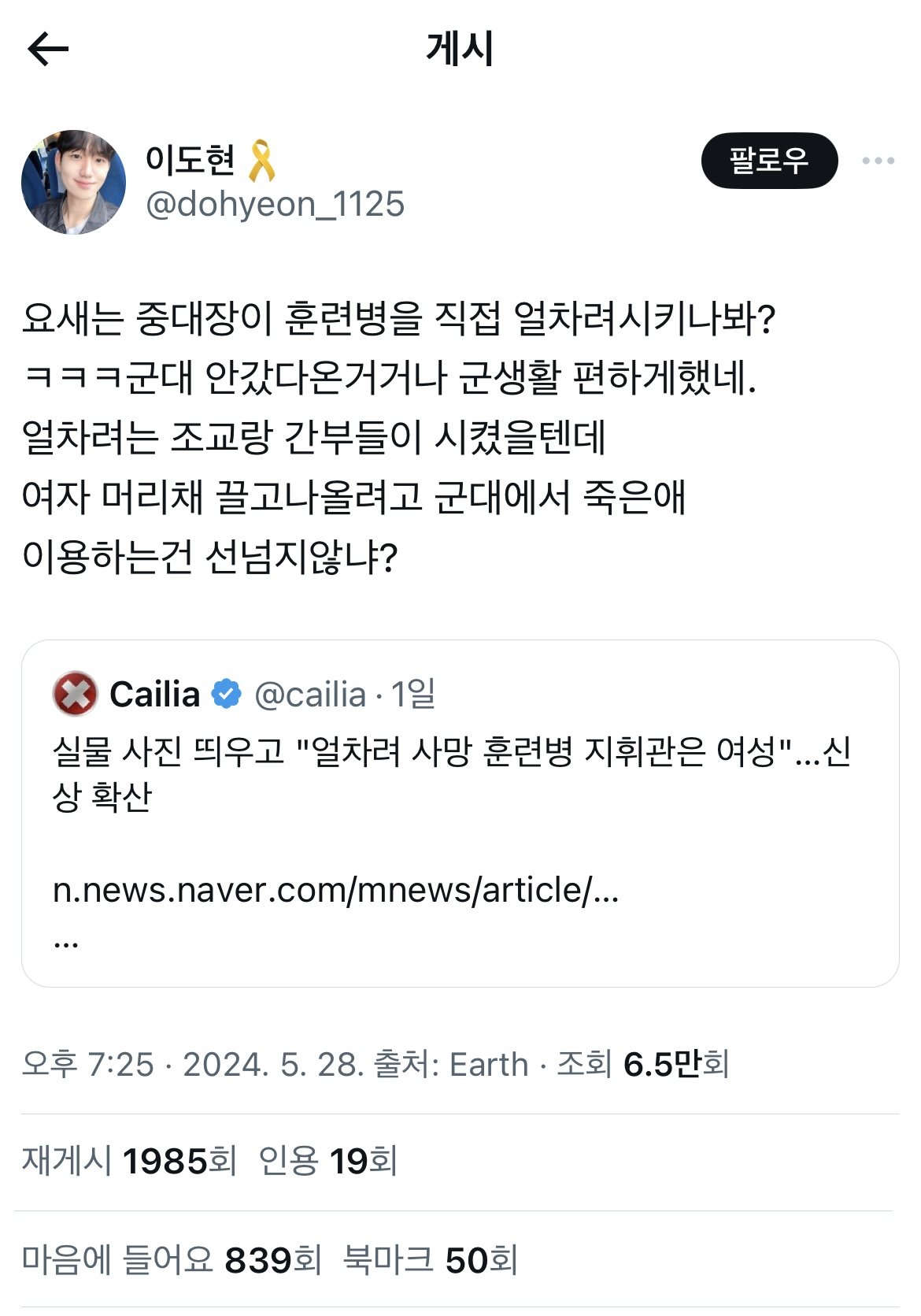 훈련병 사망사건은 여혐을 위한 주작이라는 트위터 유저