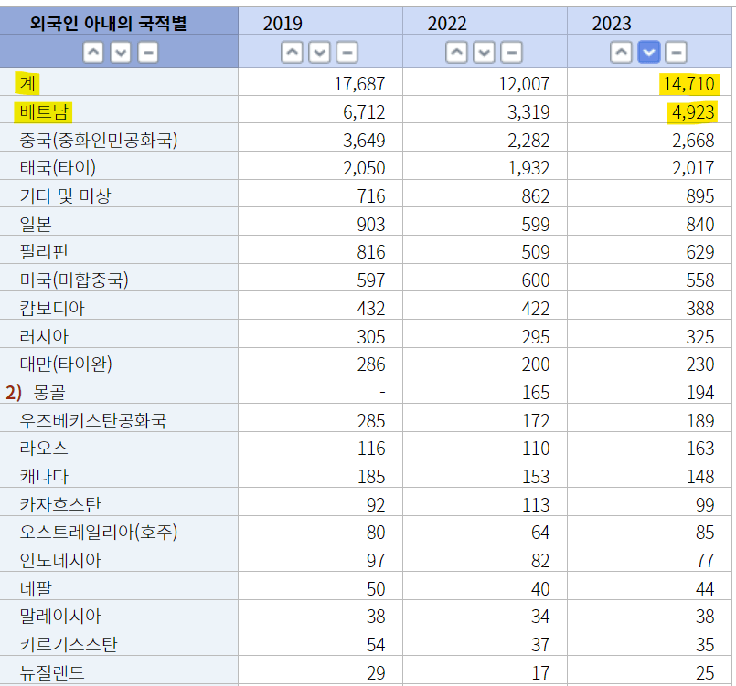 실질적으로 한국남자 국결 국적은 동남아여성들이 1위