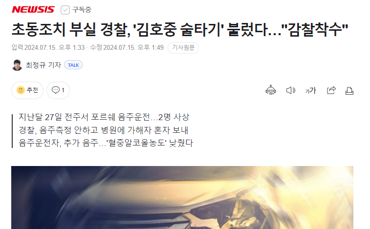 초동조치 부실 경찰, '김호중 술타기' 불렀다…"감찰착수"