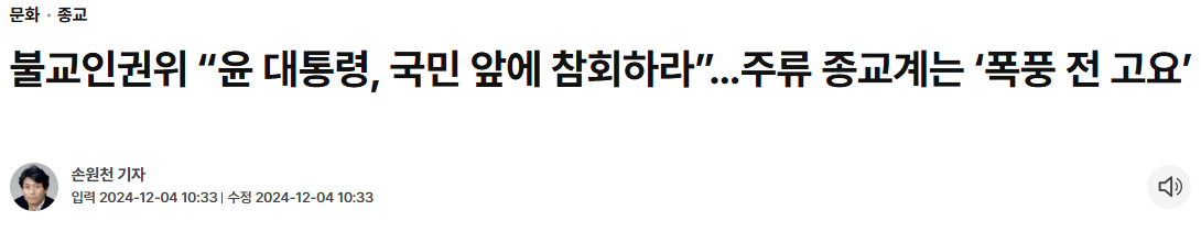 지금 대부분의 종교에서 어제 계엄령에 대해서 부정적인 입장 표명했네
